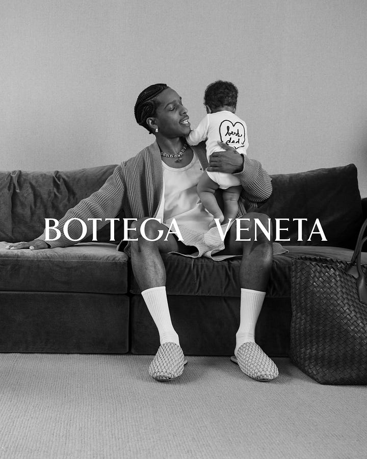 Think of Bottega Veneta’s Portraits of Fatherhood campaign with A$AP Rocky. Or brands like Coterie - a luxury nappy subscription service - and Artipoppe, whose baby carriers cost upwards of $700. In contrast to traditional baby brands that centre the child in their imagery and emotional core, these brands treat children almost as luxury accessories to the parents’ life.